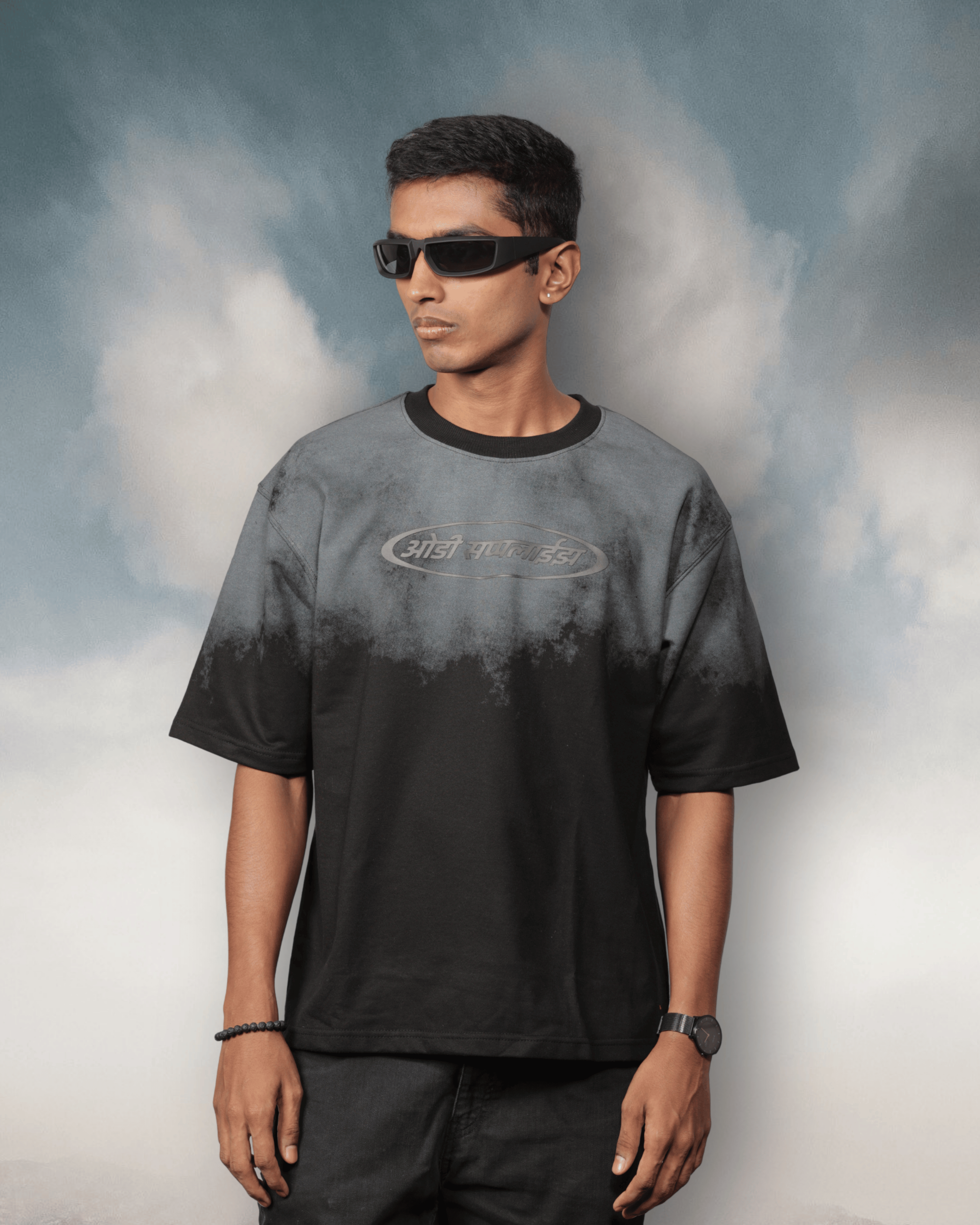 A statement in monochrome. The Noir Haze Tee features a gradient fade effect with the Ohdee Supplies logo, reworked in Hindi script—clean, minimal, and unapologetically rooted. 🔥🖤🌫️
